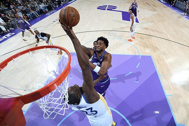 本场比赛中,本场比赛中,爵士的先发得分后卫布莱斯-森萨博(Brice Sensabaugh)还是发挥出了自己在进攻端的特点。森萨博全场出场28分31秒,投篮13中7,三分线外5中2,罚球6中5,得到了全队最高分21分外加2篮板3助攻2盖帽的数据,还有4次失误和2次犯规,正负值为+2。森萨博在出场时间不多且出手次数有限的情况下还是在进攻端发挥出了自己各方面的特点。他是一名优秀的得分手,他有着全面的得分能力,他能够通过突破完成冲击,他在中远距离投篮方面也有着较高的稳定性。森萨博在其他方面的表现也算是马马虎虎,也没有什么太大的问题。森萨博的状态相当不错,如果他能够得到更多的出场时间,他的数据和表现显然也会有大幅度的提升。