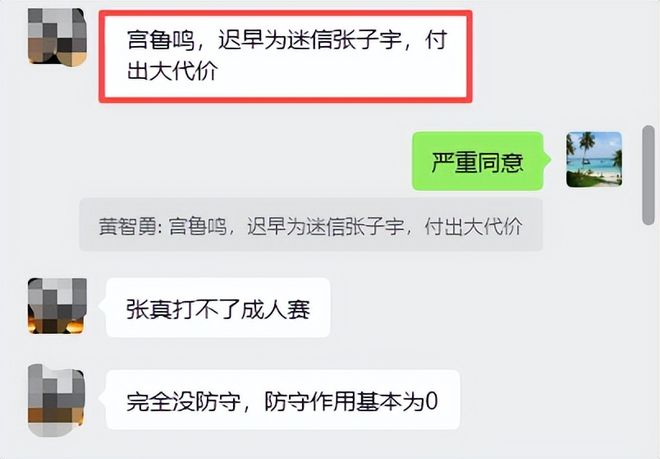 球迷说,张子宇在场就是4打5,完全没防守,防守作用基本为0。进攻手段单一,步伐移动缓慢,脚上像捆绑了一百斤石头。人家郑海霞也慢,但人家有中没,有背打,有盖帽。可是张子宇有什么呢?没有一个抢断和盖帽,甚至篮板球和助攻也比另两个中锋少得多。