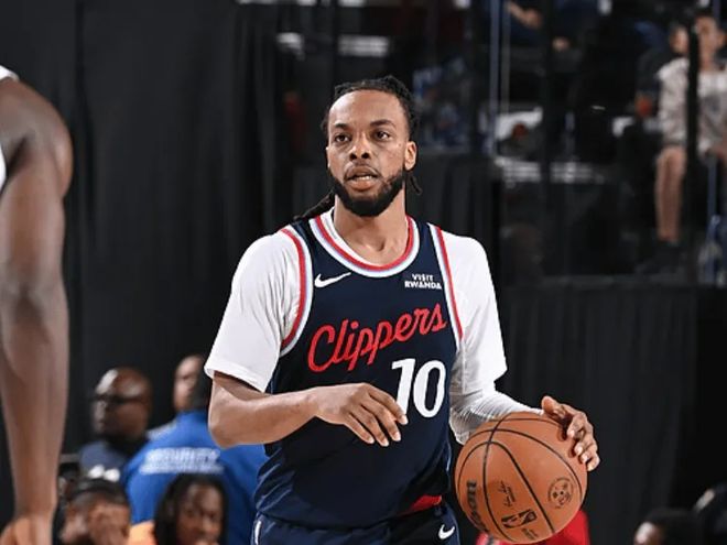 加兰,26岁,两届全明星,为快船出战的第五场比赛,25.4分钟,17.8分2.4篮板5.8助攻,投篮47.1%,三分45.9%。五战全胜,合计89分,快船队史前五场得分最高的控卫。