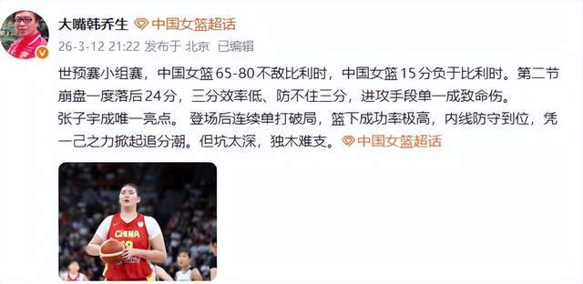 女篮惨败比利时,韩乔生一针见血,付政浩说破症结,广东记者戳心