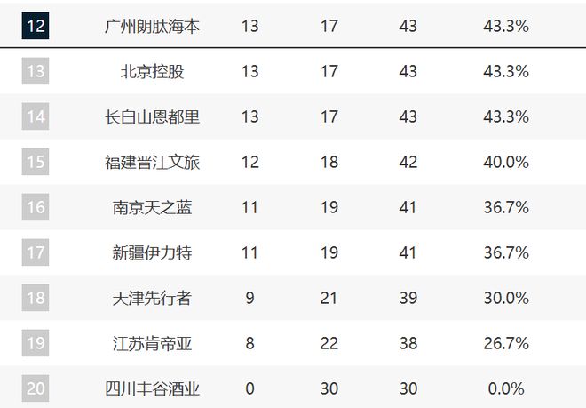 至于后面的新疆、天津和江苏都是连败,按照现在的状态看不到什么可能性了。四川已经30连败了。