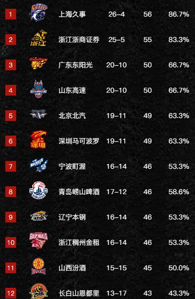 山东男篮凭借高诗岩的出色发挥,战胜了新疆队,并且拿下这场比赛的胜利之后,山东队和广东队的积分一样,山东暂居第四名的位置,北京队轻取浙江队,北京的内线太强了,浙江根本没有还手的能力,麦基展现了自己的天赋,北京队目前排在第五的位置,深圳队战胜江苏后拿到了一波5连胜,目前和北京的积分一样,排在第六的位置,宁波队低调的发力目前已经到了第七名的位置,青岛队第八名!