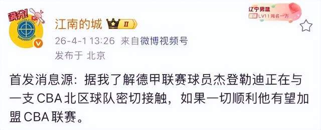北京时间4月1日消息,辽宁男篮近期状态起伏,近五战仅取两胜,积分榜排名滑落至第十位,季后赛席位面临压力。然而,球队引援动作已取得实质性进展——据媒体人“江南的城”确认,德甲篮板王杰登·勒迪(Jaden Ledy)即将加盟辽宁男篮,目前他已抵达香港,即将与球队会合。