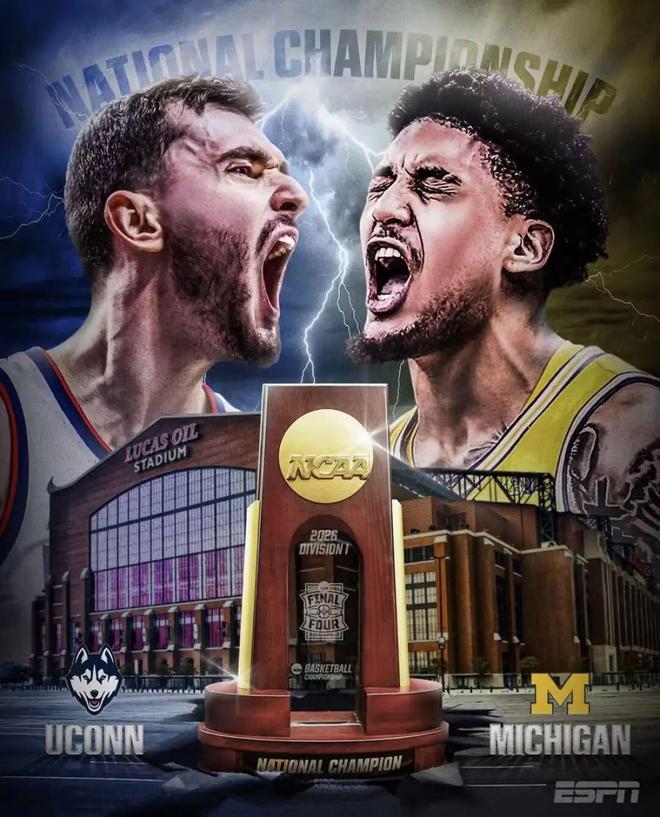 本年度NCAA疯狂三月即将迎来最终章,印第安纳波利斯的卢卡斯石油体育场即将见证一场巅峰对决。北京时间4月7日,2026年NCAA男篮全国锦标赛决赛将在康涅狄格大学与密歇根大学之间展开。