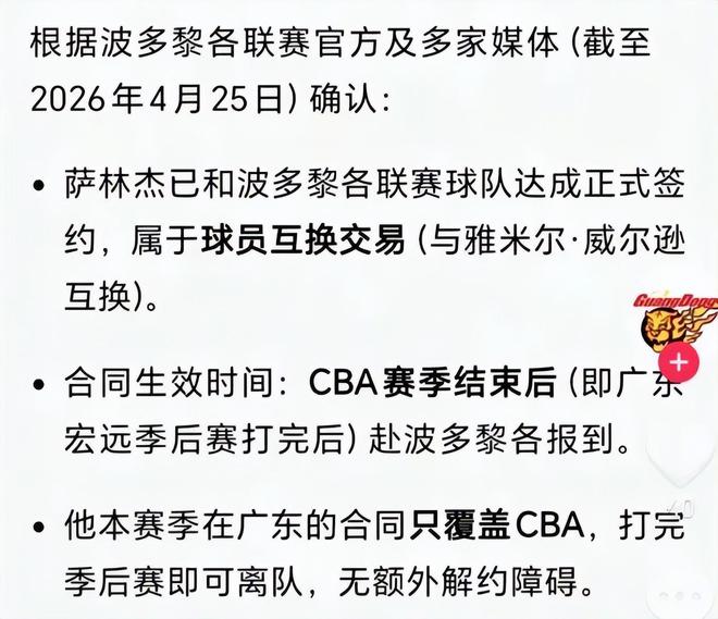 在常规赛阶段,内线一直都是广东男篮的软肋,萨林杰难当大用。虽然广东男篮也补强了拉科塞维奇,但萨林杰的表现依旧让人担心。另外据媒体透露,萨林杰已经找到了下家,他已经和波多黎各联赛的公牛蟹队完成了签约,公牛蟹队前两天已经官宣了这个消息。打完本赛季的CBA联赛后,萨林杰就会前往公牛蟹队报到。对于这个消息,很多广东球迷就更加担心了,主要是怕萨林杰为了保持健康在比赛中出工不出力,这种情况是完全有可能发生的。