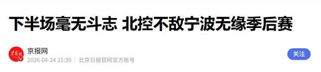 信息来源:京报网 2026-04-24——下半场毫无斗志 北控不敌宁波无缘季后赛