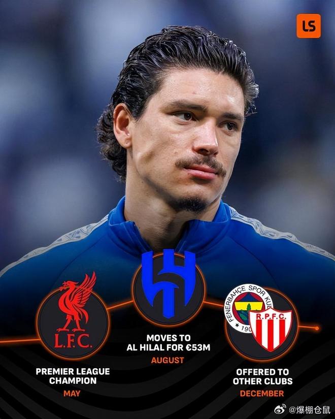而要知道的是,他薪资在半年就达到1123万欧元的水准,确实是太高。这也看出沙特人有多么的有钱,说不要就不要了。昔日双方签订合约时可是许下三年的合作时间,且年薪达到了2245万欧元,折合成周薪是43万欧元,这放在英超联赛都算顶级水准。努涅斯的一共在沙特出战23场的,打出7个进球和5个助攻的成绩。