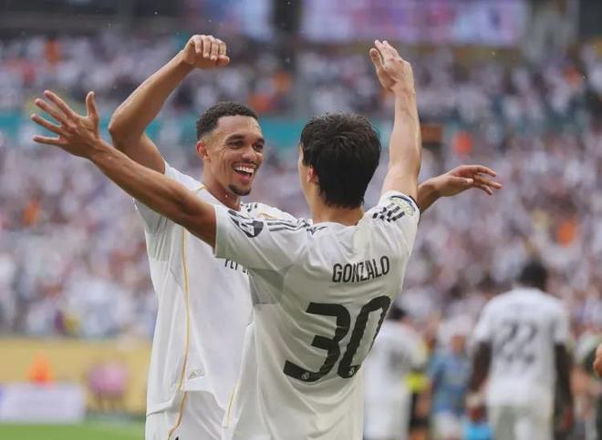 4-1!西甲第24轮,皇马在伯纳乌轻松拿下皇家社会,先赛一场以60分登顶,豪取联赛8连胜。阿诺德的助攻、巴尔韦德的远射、维尼修斯的梅开二度,一切看起来都那么完美。