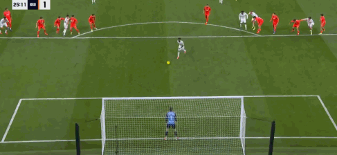第25分钟,再次取得领先,维尼修斯造点并亲自主罚命中,皇马2-1