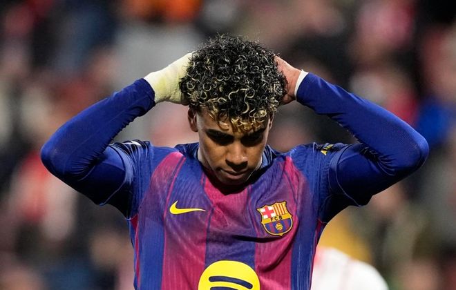 第43分钟,拉菲尼亚的低射击中了右侧立柱弹出。随后,奥尔莫制造点球机会。亚马尔主罚,结果他的射门也是击中立柱,太无奈了。巴萨连续两次中柱,运气有些差。半场结束,巴萨0-0赫罗纳。