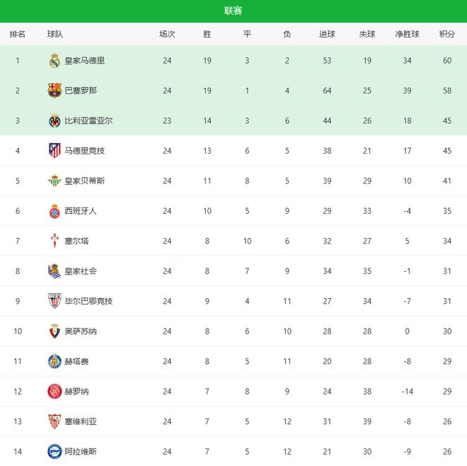 随着巴萨1-2爆冷+皇马笑纳!西甲最新积分榜:马竞掉队,前4差15分