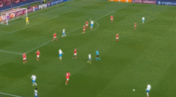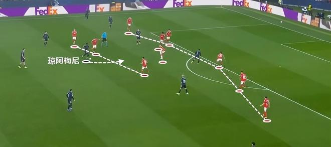 这一次的进攻,最初来自于琼阿梅尼的远射,在被封堵之后,皮球转移到侧翼,随后传中球打禁区后点。