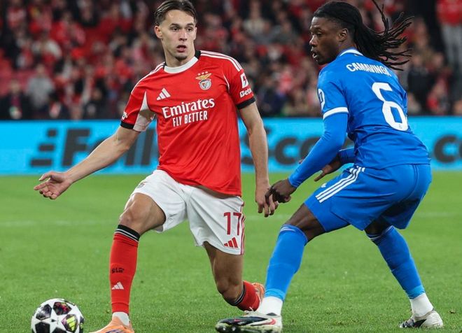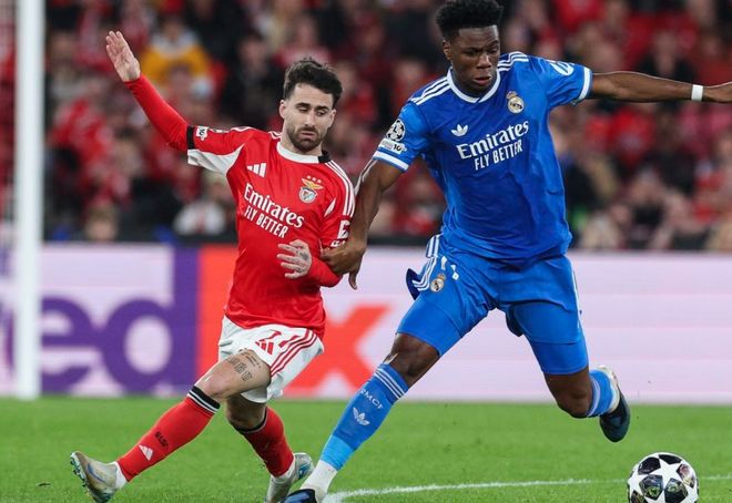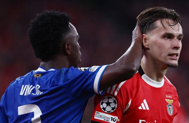 欧冠淘汰赛附加赛首回合的一场比赛展开争夺,皇马做客挑战本菲卡。上半场,姆巴佩低射被扑出,维尼修斯射门稍稍偏出,奥尔斯内斯远射被扑出,居莱尔低射也被扑出。下半场,维尼修斯轰入一记世界波,穆里尼奥染红下场。最终,皇马1-0击败本菲卡。