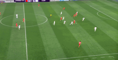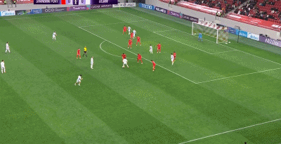 第50分钟,姜祥佑长距离带球,随后射门被颜骏凌扑出