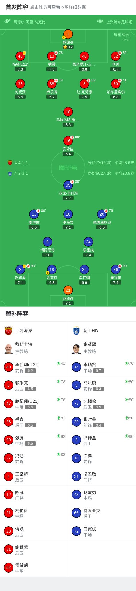 北京时间2月18日亚足联冠军精英联赛 联赛阶段 第8轮,上海海港对阵蔚山HD。最终比分上海海港 0-0 蔚山HD。