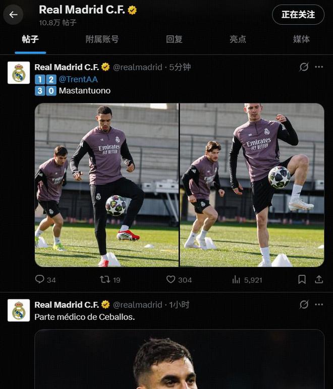 皇马官推在这条道歉消息发布后更新了阿诺德和马斯坦托诺的训练照,此前公布了塞瓦略斯的伤情公告。
