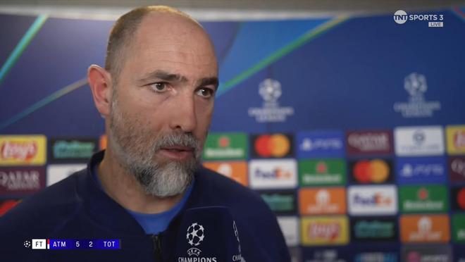 率队在欧冠1/8决赛首回合客场2-5不敌马德里竞技之后,托特纳姆热刺主教练图多尔接受了来自TNT体育的采访。