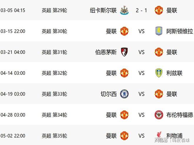 需要留意的是,本周面对阿斯顿维拉,安排在晚上的黄金时段,随后的4场,全部都是所谓的“阴间”深夜进行,5月份的比赛,暂时还没有公布确切的时间。由于曼联没有其他比赛,为了收视率的考虑,一般都是独角戏,安排在当地的晚上,也就是国内的深夜,这是很难避免的问题。