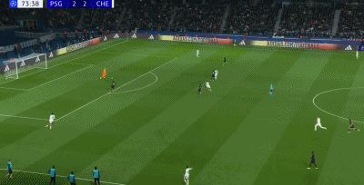 第74分钟表现不佳的切尔西门将约根森,出球失误直接被抢断,维蒂尼亚随后用一记吊射,再次攻破了蓝军的球门,大巴黎在主场重新取得了3-2的领先,虽然若昂佩德罗随后扳平比分,但越位在先进球被主裁判取消,比赛最后时刻,替补登场的克瓦拉茨赫利亚左路梅开二度,将比分定格为了5-2。
