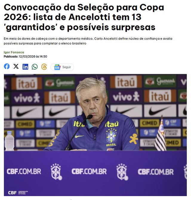 世界杯的大名单,每支球队能报26名球员。安切洛蒂基本敲定18人,还有8个名额呢?estado透露,3月份的两场友谊赛,将是球员接受安切洛蒂考察的最后窗口。有9名球员分为“非常有可能入选”和“可能的惊喜”: