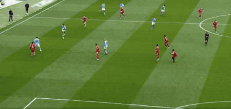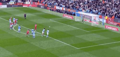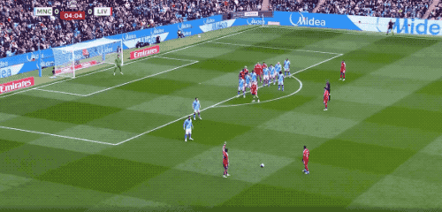 上半场补时阶段,谢尔基送出直塞,塞梅尼奥下底传中,哈兰德头球,梅开二度。