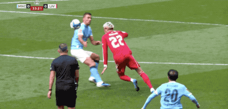 第36分钟,努内斯禁区内传球,范迪克如同伐木一般放倒了奥莱利,奥利弗迅速将手指向点球点。