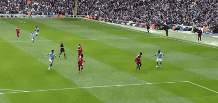 半场结束,曼城在射门7-6,射正4-1的情况下,2-0暂时领先。
