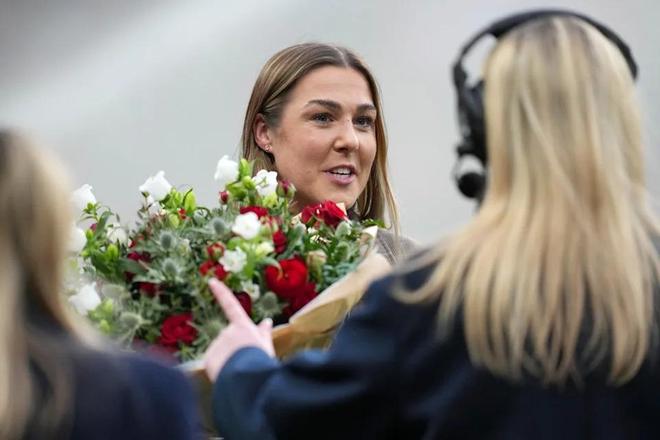 周二的流程设计暴露了管理层的焦虑: framed shirt(裱框球衣)标注53次出场,鲜花束,以及——最关键的——与现役球员的公开互动。镜头捕捉到她与利亚·威廉森(Leah Williamson)、露西·布龙泽(Lucy Bronze)、凯拉·沃尔什(Keira Walsh)、阿莱西娅·鲁索(Alessia Russo)的拥抱,这些2022年欧洲杯冠军成员的身份本身就是背书。