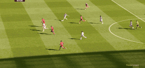 第64分钟,水晶宫反击过程中三箭齐发,范迪克展现了顶级的防守能力,干扰了萨尔的射门。