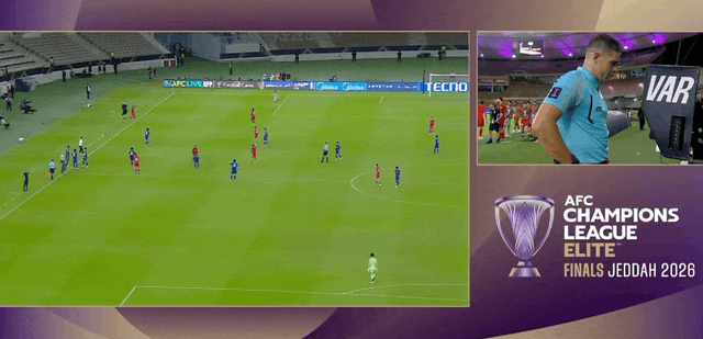 本场最具争议的点在于一个极为罕见的情况——VAR因“换人过程”而介入比赛,并最终推翻了迪拜青年国民的进球。引发风波的场景发生在比赛下半场补时第1分钟。