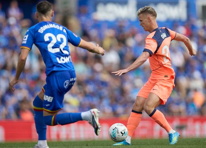 第39分钟,加维也犯规染黄。第45分钟,巴萨进球了!佩德里送出手术刀般的直塞球。费尔明-洛佩斯前插,突入禁区,单刀推射破门。半场结束,巴萨1-0领先赫塔费。巴萨上半场控球率高达78%,6次射门,1次射正,打进1球。而赫塔费上半场只有2次射门,都没有射正。