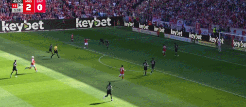 第45+2分钟,半场3球落后,贝克尔补射破门,拜仁0-3美因茨